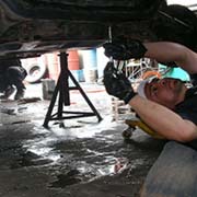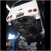 下廻りの点検中です。腐食箇所の点検・交換をします。